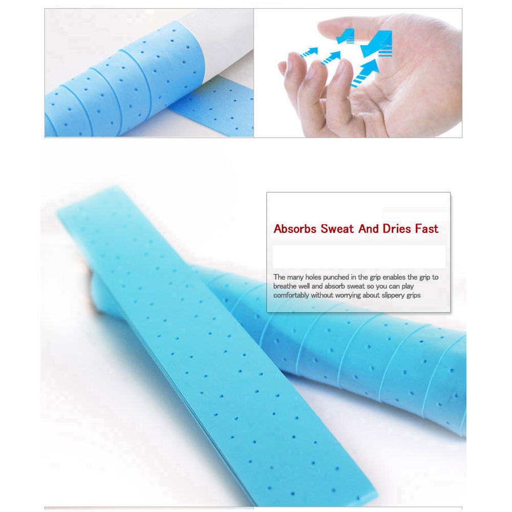 Kimony Hi-Soft grips are a wet type grip with good absorption and a tacky feel created with the best polyurethane to give extended durability. On this grip the perforations allow for better ventilation and further promote the absorption of sweat. so you can play comfortably without worrying about slipping.