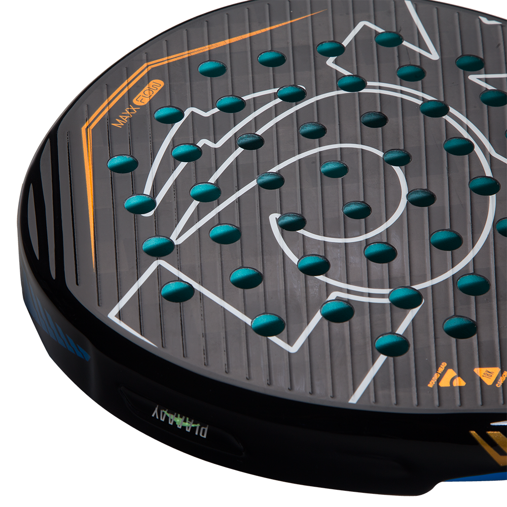 The Maxx Flow represents an innovative leap in racket design, engineered to elevate on-court performance to new heights. Central to its prowess is the asymmetric core, a carbon construction that ensures unparalleled rigidity and stability, facilitating optimal energy transfer for enhanced power and precision. Complementing this is the C18 carbon layer, enhancing durability and ensuring consistent responsiveness with every stroke. The integration of the 3D Spin Lines system enhances ball rotation, boosting spin and enhancing control feedback. With a balance at the centre of the racket, it strikes a perfect harmony between power and manoeuvrability, further fortified by Carbon Reinforcements for structural durability. The Dynamic Holes System, featuring a progressive arrangement of holes, amplifies power generation. Moreover, its Comfort Wristband system offers customizable wrist support for added comfort and control