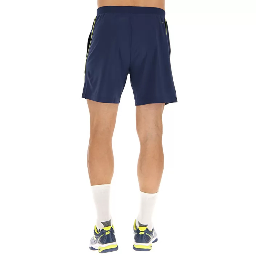 Lotto Mens Superrapida Shorts (Dark Denim/Acid Yellow)The Superrapida V short has a slim elastic drawcord waistband, pockets, and colour accents on the sides. Made with four-way stretch performance material.