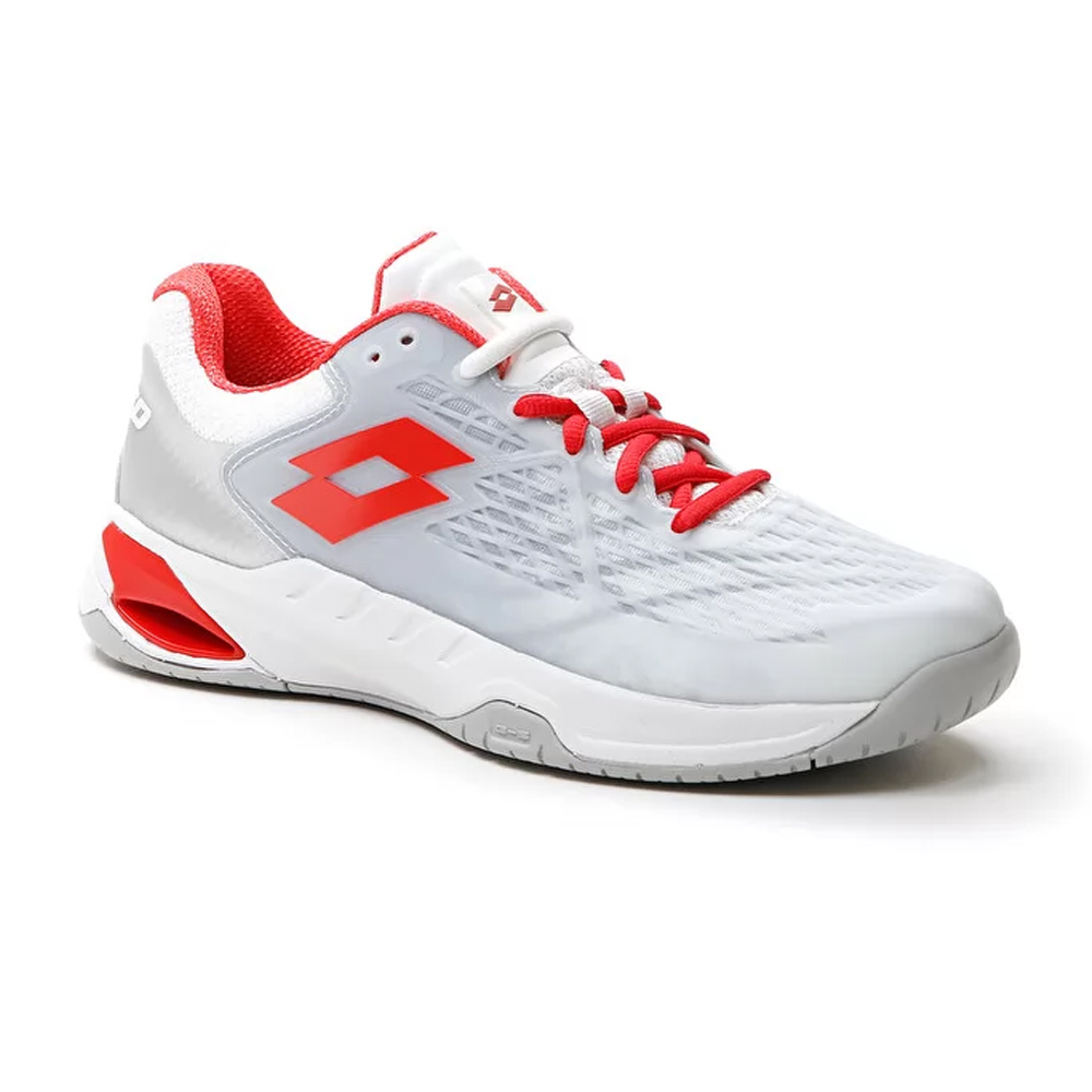 Lotto Womens Mirage 100 SPD Tennis Shoes (All White/Poppy Red) (2022) Endorsed by professional players, Mirage 100 is developed from Lotto long-term technical experience and heritage. Realized with the best technical features like Lotto’s Syn-Pulse technology, and the use of innovative materials. Design, shapes and lines recall the lightness, speed and stability of the product. Mirage has been developed to answer to 3 major professional players’ expectations: – Have a light shoe that enhance flexible moves, to feel agile and fast during the game – Secure stability for every steps and direction changes thanks to a new outsole geometry & conception, and a stable upper with a cage that support the foot in every direction with durability – Optimise cushioning and shock absorption to reduce injury risk, increase comfort, and provide energy return thanks to Lotto Syn-Pulse technology. SPD – SPEED SOLE: Speed sole has been developed to face aggressive terrains, such as asphalt, concrete, and generally hard courts.