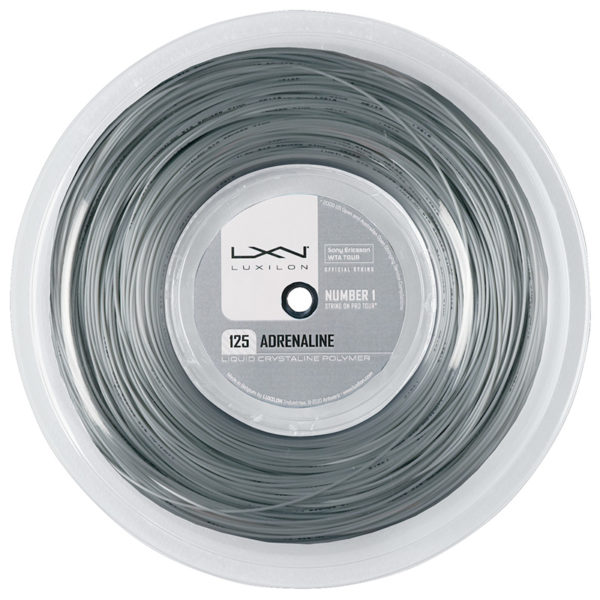 Luxilon Adrenaline 200m ReelAdrenaline delivers a hard-hitting combination of spin and control thanks to Luxilon’s proprietary liquid crystalline polymer construction. With the capacity to keep big cuts within the lines, this is an appealing option for aggressive baseliners who need crisp feel and precision from their strings.
