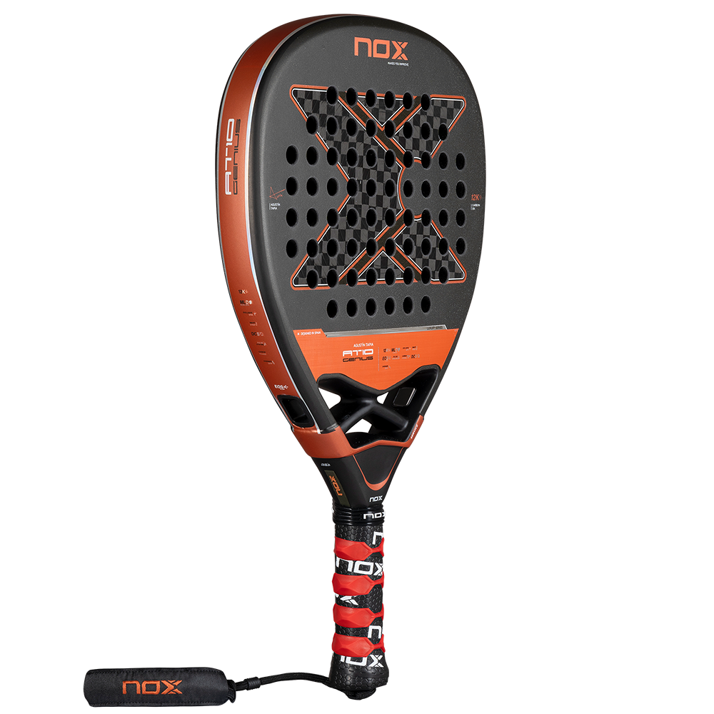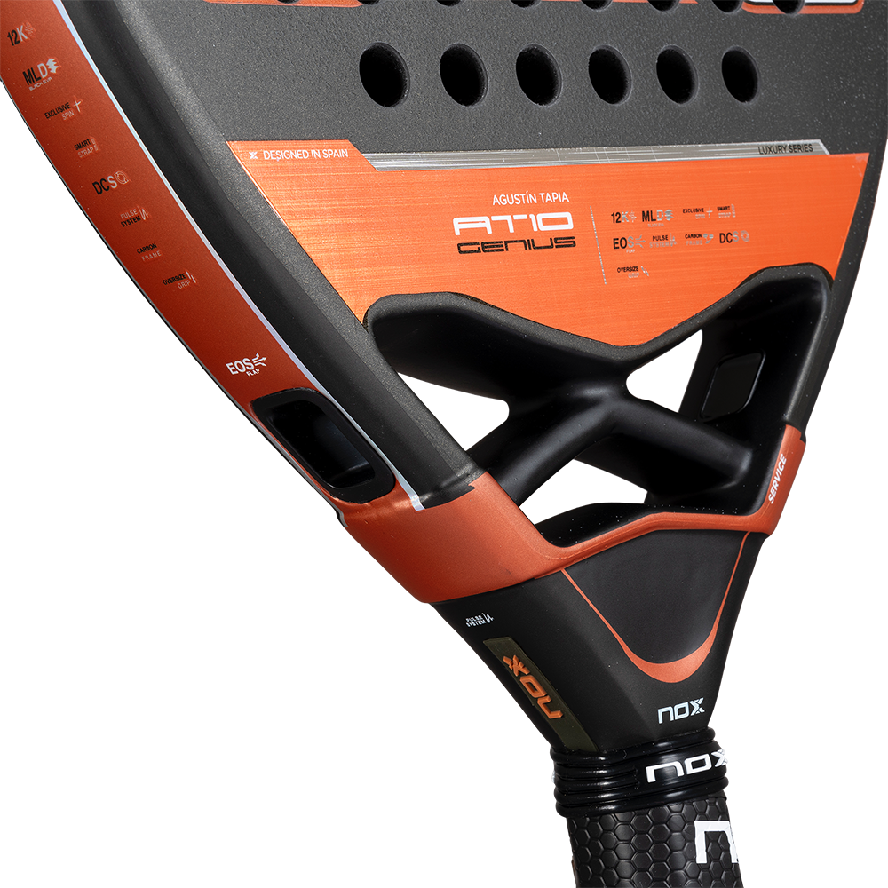 The Agustín Tapia 2025 Diamond-shaped Racket is designed for aggressive players seeking power and control. Featuring an octagonal cap for enhanced grip and TECHNOLOGIES EOS Flap for optimized handling, it’s built for speed and precision. Made with 12K carbon fiber and a multi-layer MLD Black EVA core, it provides a firm, solid hitting feel, while the EXCLUSIVE SPIN dual-texture improves control and spin. The NOX Custom Grip® and Pulse System reduce vibration for comfort, and the Smartstrap® system offers hygiene, safety, and customizability.