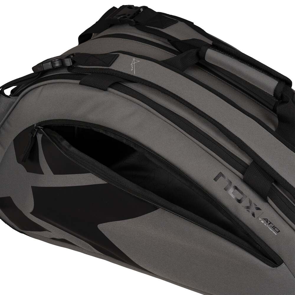 Discover the new TEAM padel bag collection, featuring a modern design in grey and black. The AT10 model, created for Premier Padel star Agustin Tapia, blends style and functionality for tournaments and matches.