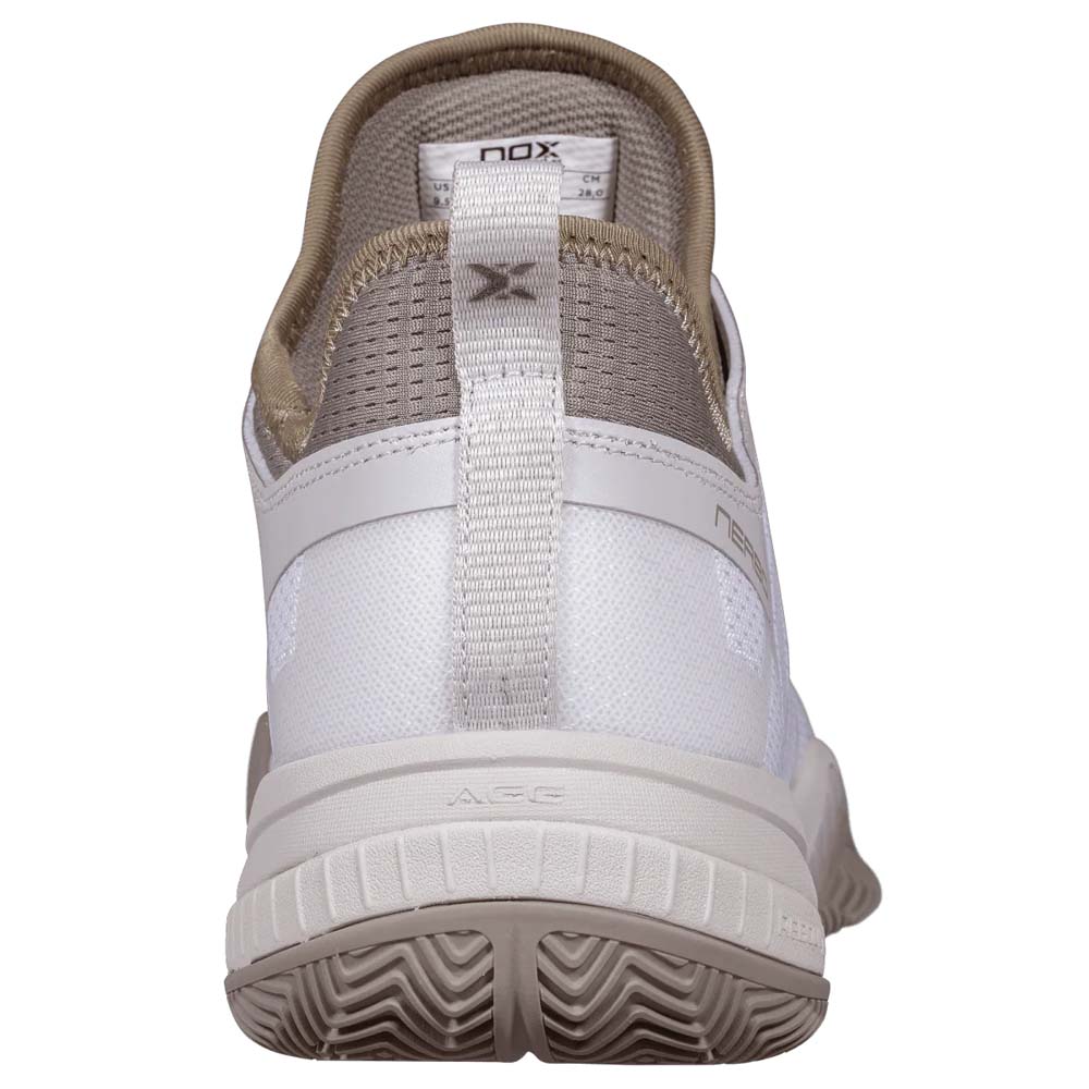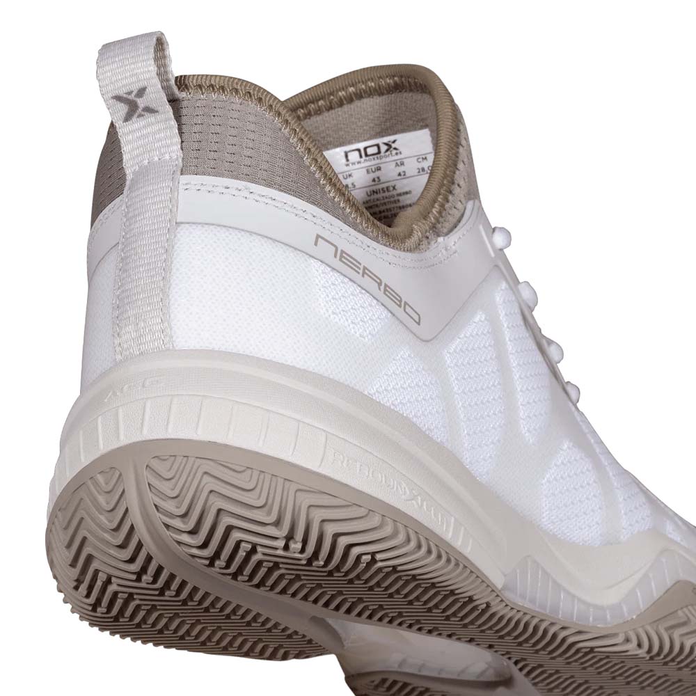 The Nox NERBO White/Vetiver Green is a high-performance padel shoe designed for players who demand maximum speed and a distinguished aesthetic. This model is built for aggressive movement, offering a technical update over the 2025 version with improved materials that enhance both comfort and structural durability.