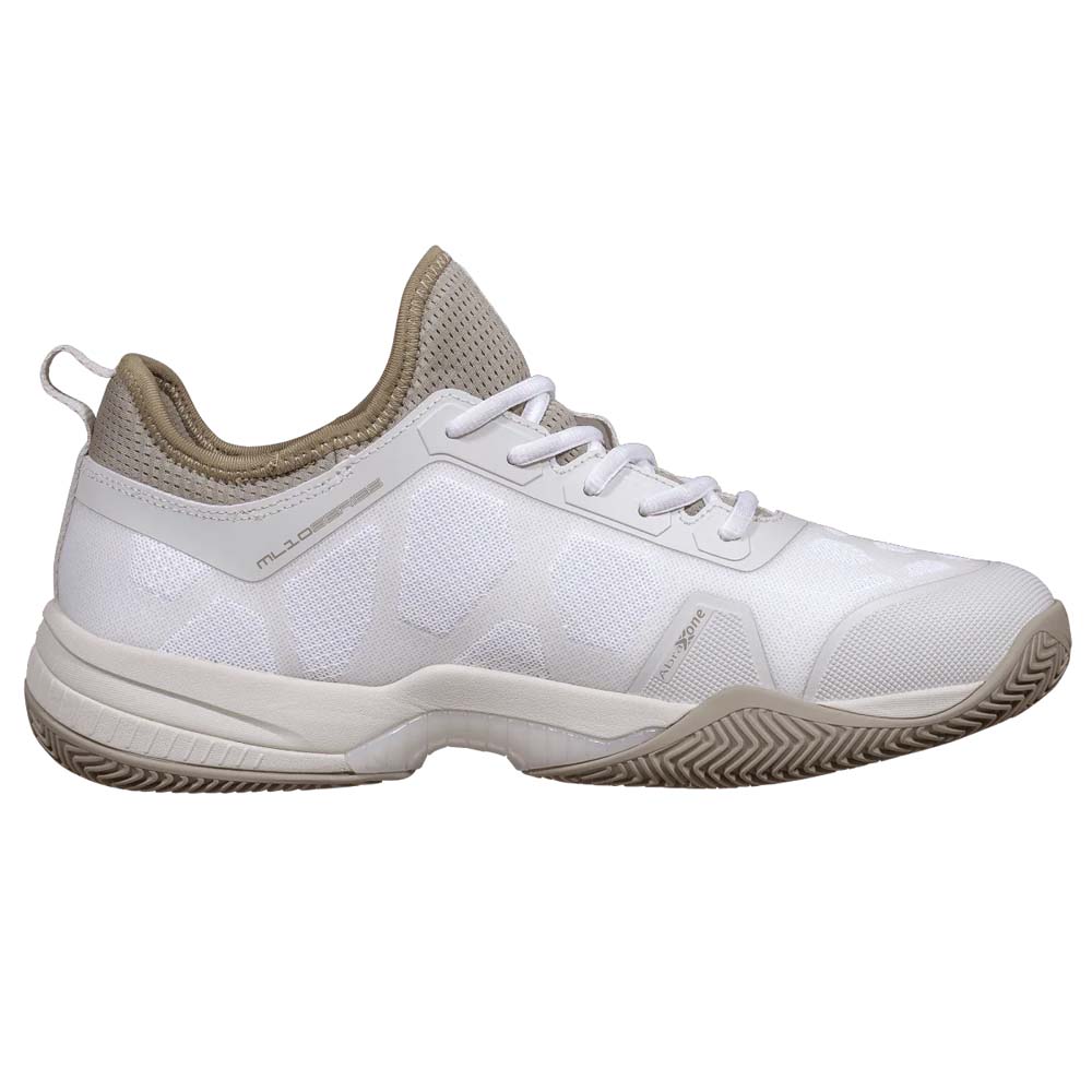 Core Performance Technologies – Advanced Gravity Geometry (AGG): An increased heel-to-toe drop that primes the player for a quick start and reduces the risk of calf injuries by lowering muscle load. – Lateral Support: An expanded sole surface area that provides a stable foundation, specifically designed to prevent ankle twisting during lateral cuts. – Optimal Grip Sole: A hybrid herringbone and stud pattern that ensures versatile traction across all types of padel court surfaces.