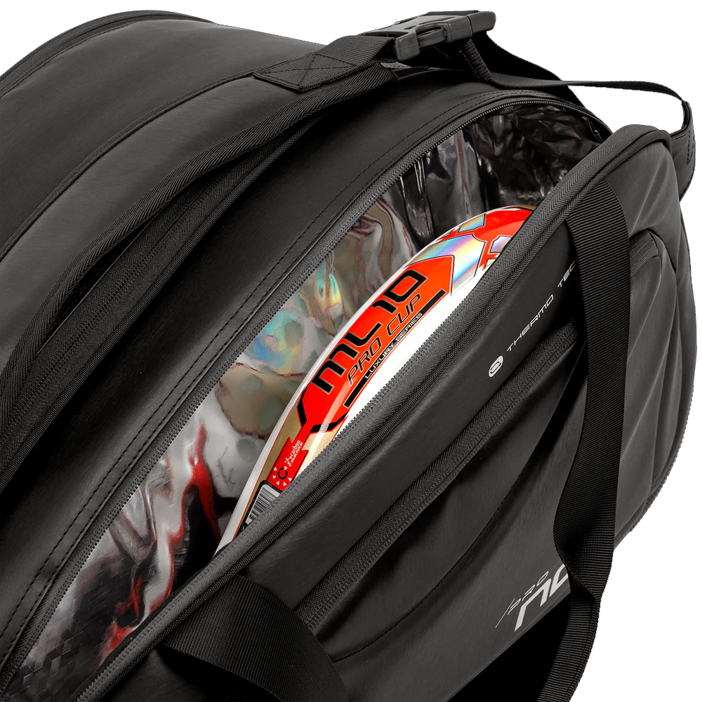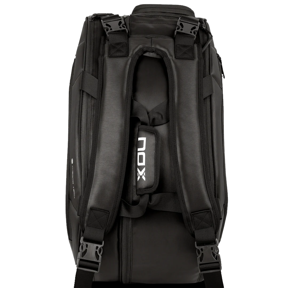It has a thermal compartment (Nox TermoTech technology) to protect your rackets from heat, a main compartment with double zipper for easy access to the interior, independent compartment for shoes with ventilation opening, side compartments.