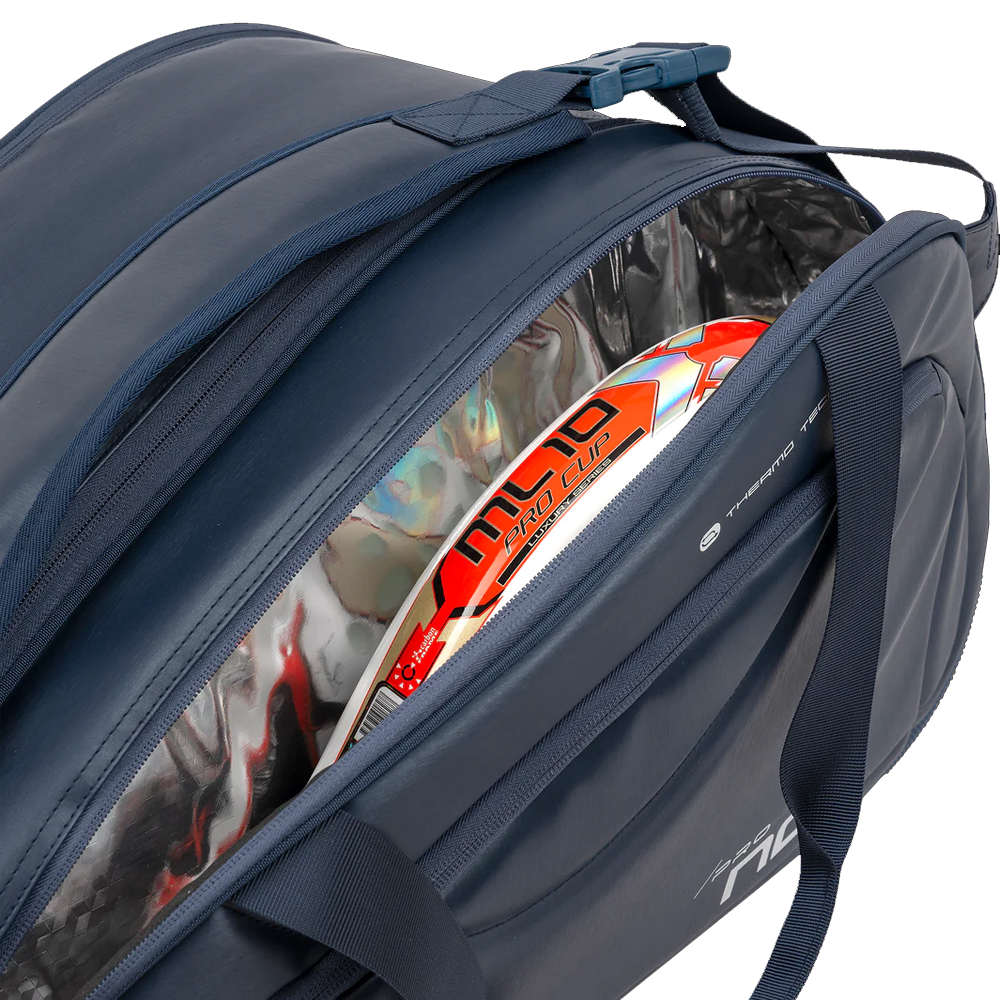 It has a thermal compartment (Nox TermoTech technology) to protect your rackets from heat, a main compartment with double zipper for easy access to the interior, independent compartment for shoes with ventilation opening, side compartments.