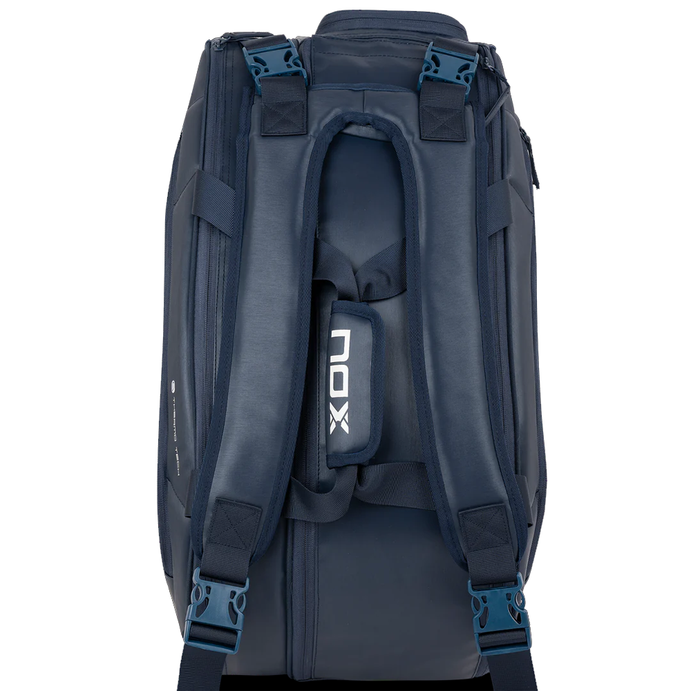 The Pro Series racket bag is compact in size but offers a large capacity to satisfy your needs. The NOX PADEL Pro Series padel racket bags and backpacks are made with high quality materials that guarantee their durability and resistance. Its elegant design in navy blue gives it a touch of sophistication and style.