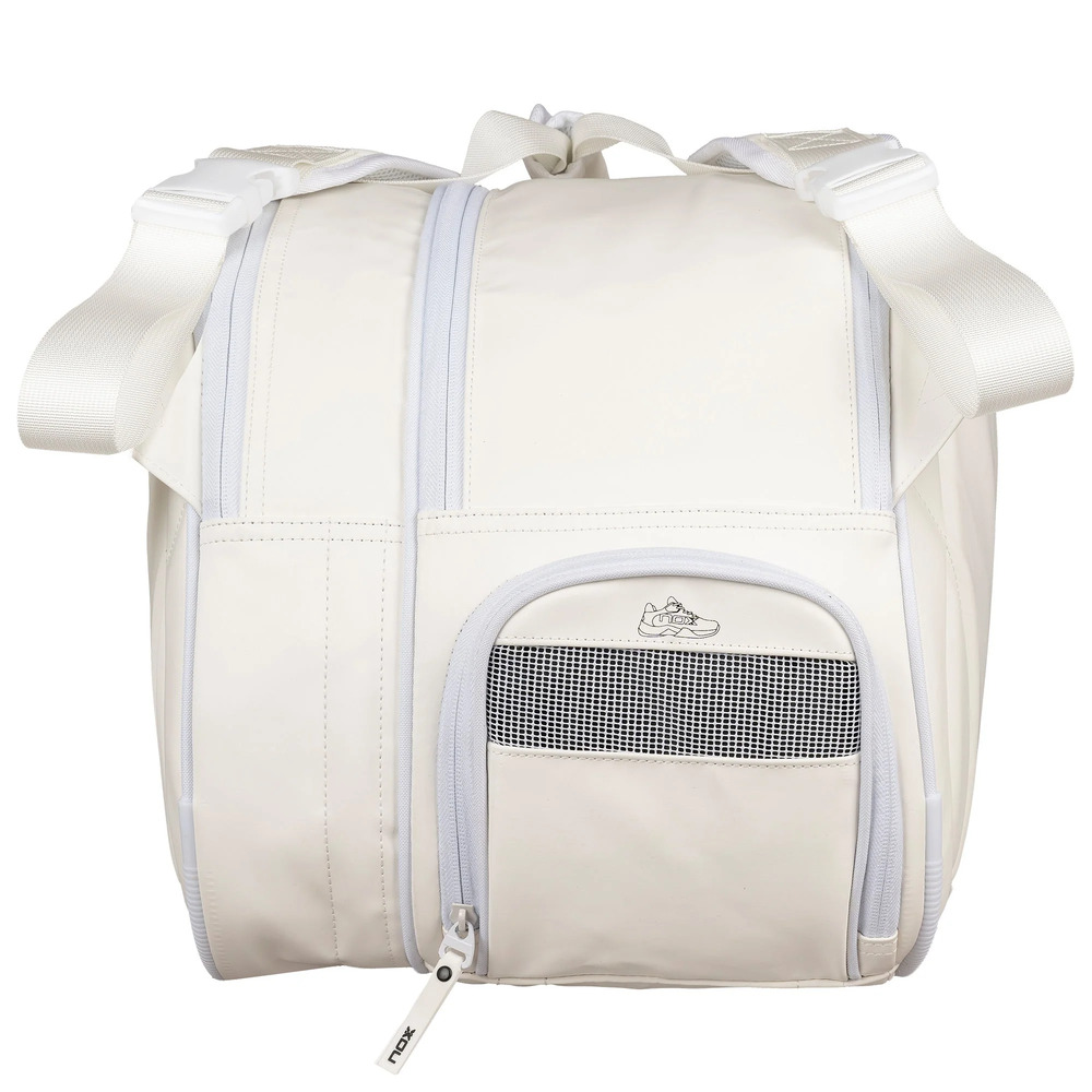 Paletero high quality and large storage capacity. The PRO racquet bag is designed so you can take everything you need to your matches and tournaments with the characteristic classic style of NOX. In white Color .