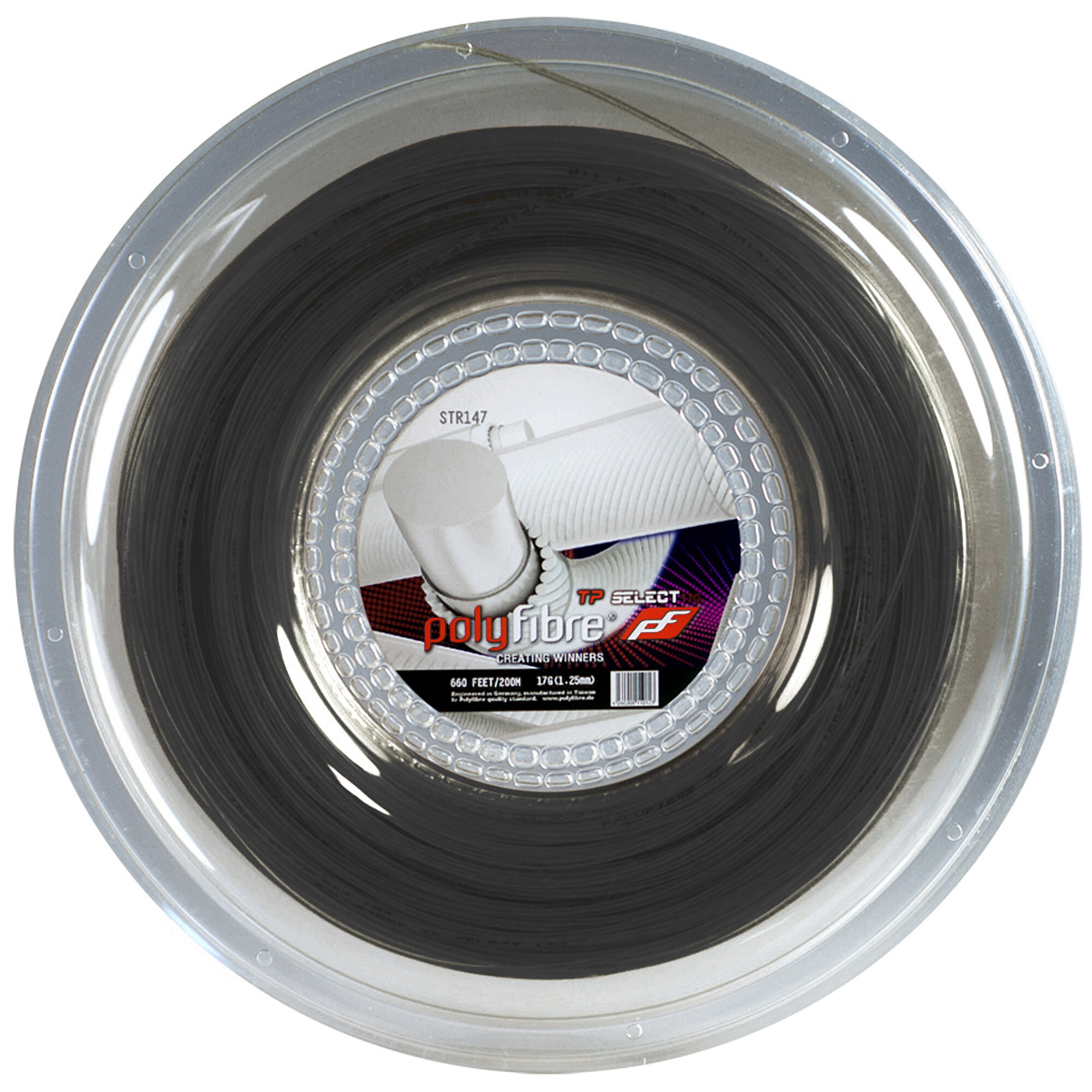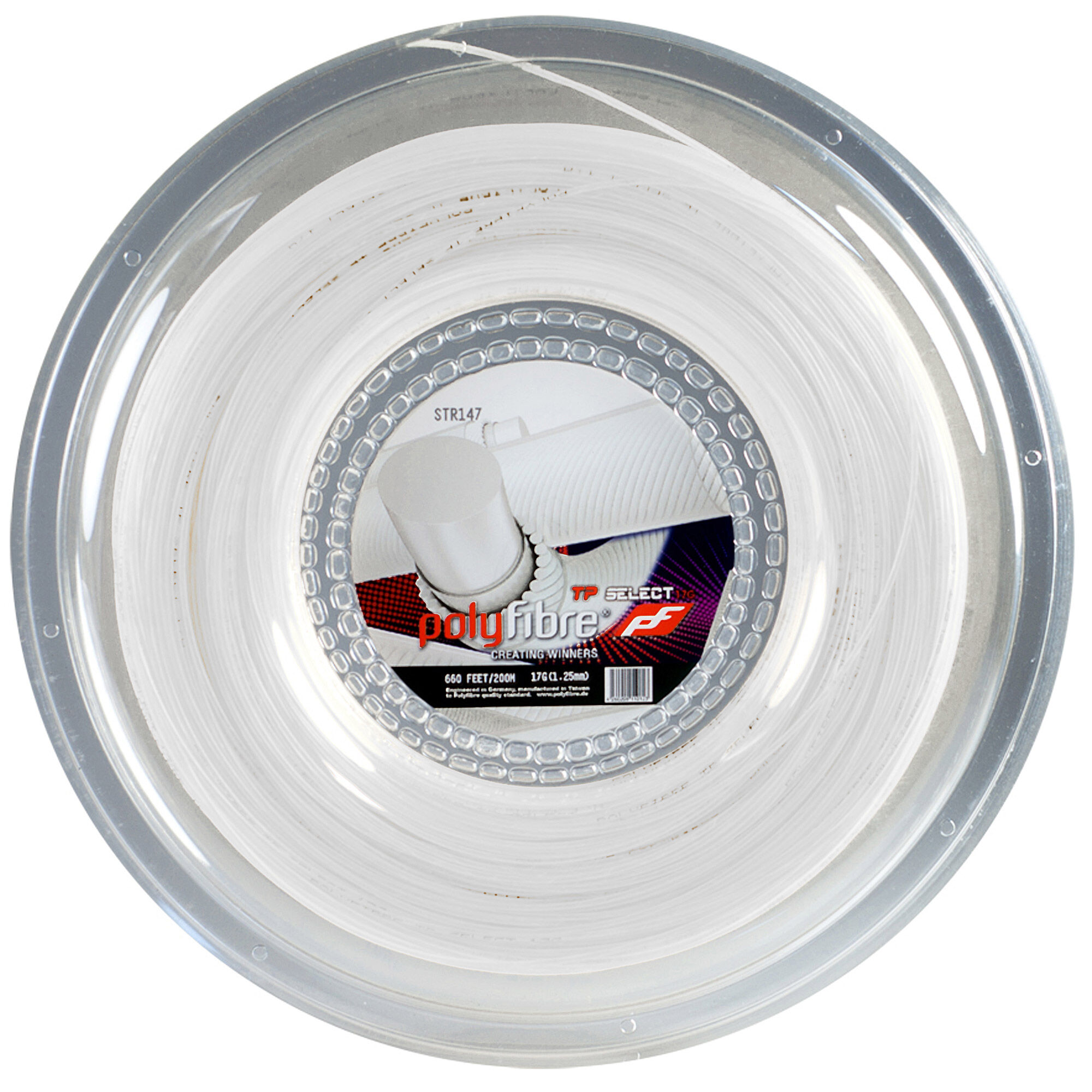 Polyfibre TP Select This 16 gauge synthetic gut is made of premium grade co-polymer with a quality outer wrap providing a lively response with good tension maitenance. It is a powerful string for all-around players who want control and a balance of playability and durability. Gauge: 16G (1.30mm), 17G (1.25mm) Length: 200m reel Colour: natural, black, white