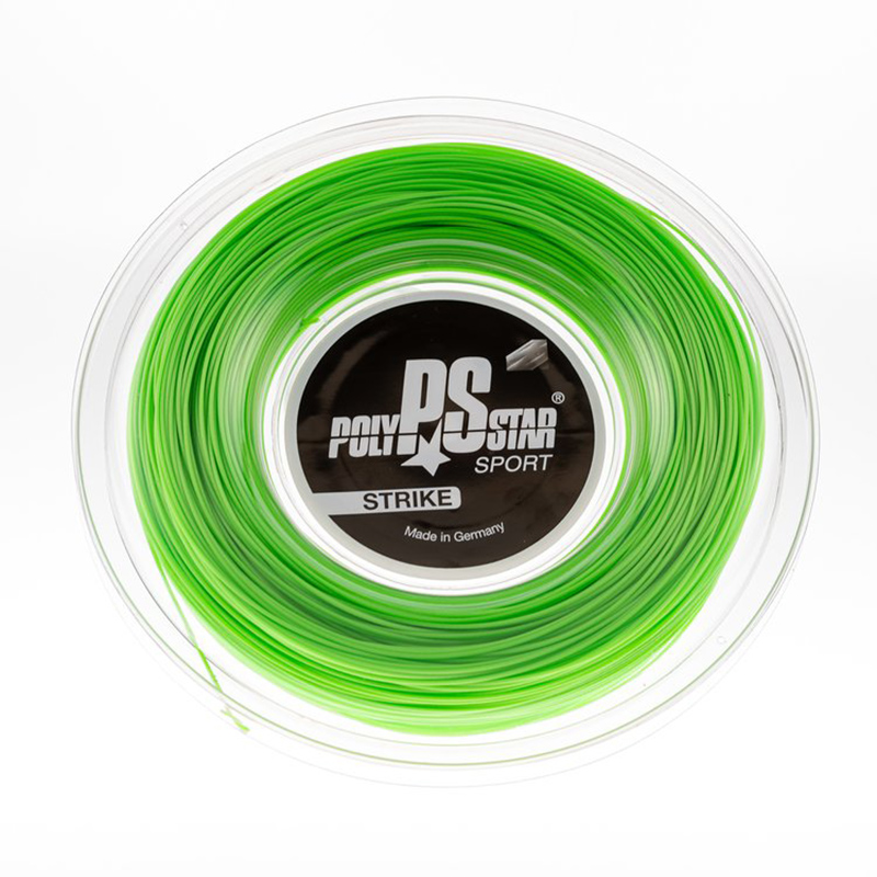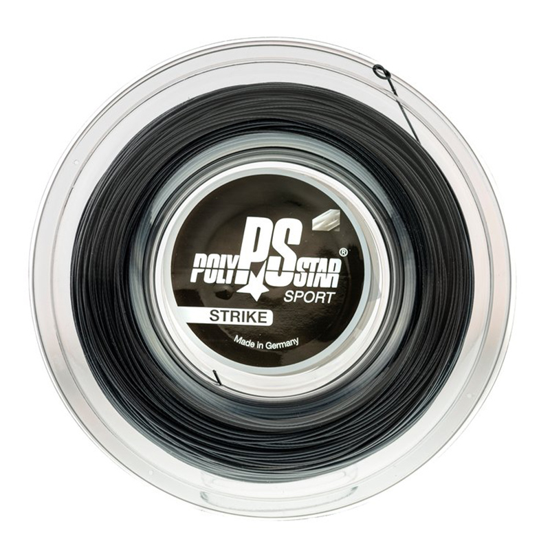 PolyStar Strike ReelStrike offers an optimum level of ball acceleration and is ideal for the player who plays with a lot of topspin and slice. Poly Star Strike has a very unique braided texture. The secret lies in its profiled surface structure. New technology and specially developed machines have helped Poly Star achieve a unique polymer modification with extra notches. This allows for increased control and ball bite. Less powerful than Poly Star Energy, this is a great string for players who like to take big cuts at the ball and demand control over power. Poly Star Strike offers a very firm stringbed without sacrificing feel and touch. Volley players will not be disappointed with this poly. Poly Star Strike maintains tension better than its predecessors. A great overall string.