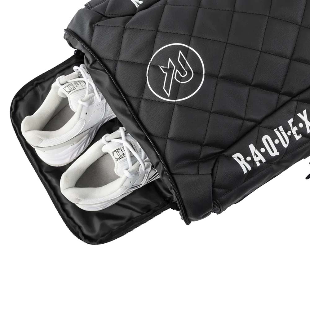 Crafted from high-quality quilted faux leather, the Elite Racquet Backpack offers outstanding durability with a refined, high-end finish. A rear racquet compartment with thermal lining safely stores up to two tennis, badminton, squash, or pickleball racquets—or one padel racquet—while helping protect them from temperature changes.