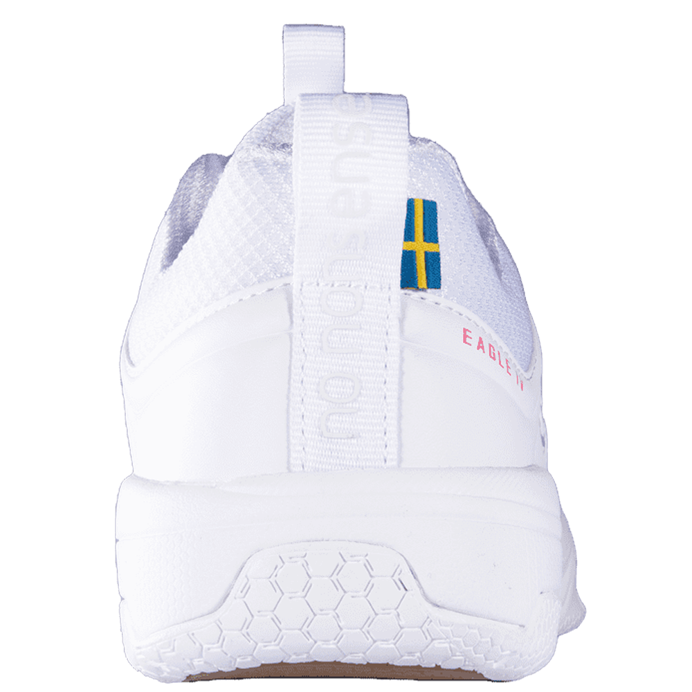 The Eagle is a lightweight and flexible shoe designed to provide the player with stability, support and excellent grip in all types of indoor sports.Featuring a reinforced KPU Upper and LMS+ technology for stability and durability, an Eva Midsole for reduced shock and Hexagrip for improved grip on all indoor courts.As with all Salming shoes this one features TGS 62/75™ – Torsion Guide System. The distance from heel to the ball of the foot (62% of the shoe) has been designed with extra stability, which ends in the so-called “ballet” line, a 75° angle. In front of the 75° line, the shoe has greater flexibility to stimulate the foot’s natural movements.