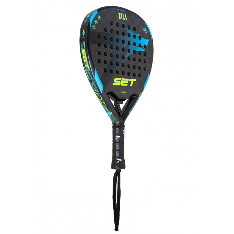 The Set Tala Padel Racket (2025) is tailored for advanced to professional-level players, focusing on achieving great power across all shots. Its teardrop shape provides a dynamic form that balances devastating power with surgical control.