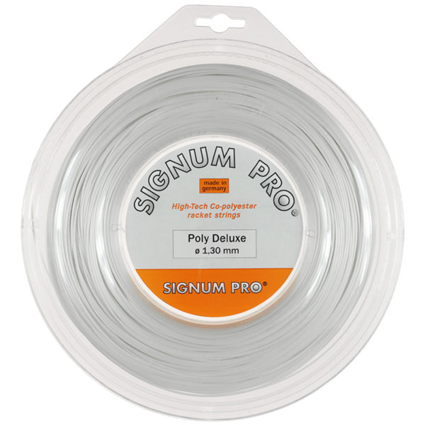 Signum Pro Poly-DeluxeSignum Pro Poly-Deluxe is a high elasticity soft polyester string which is suitable for all kind of players. It is available in some new, interesting diameters and offers good tension maintenance.