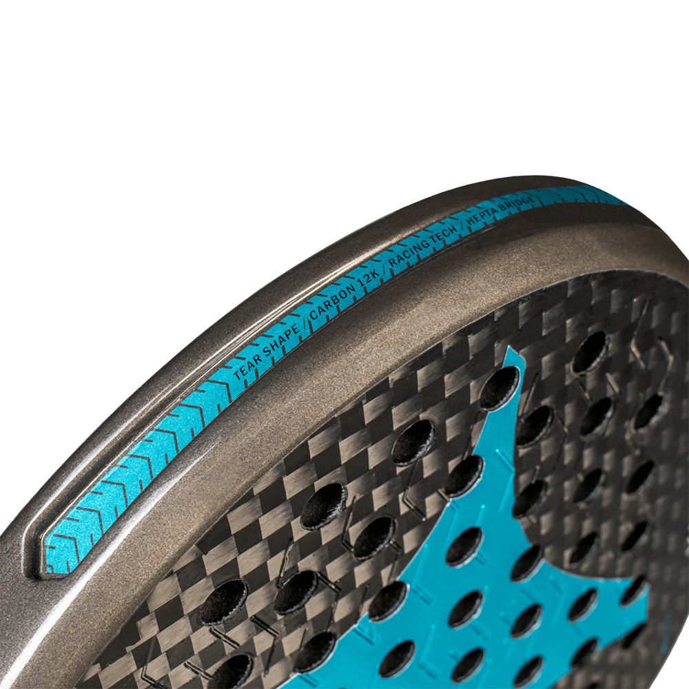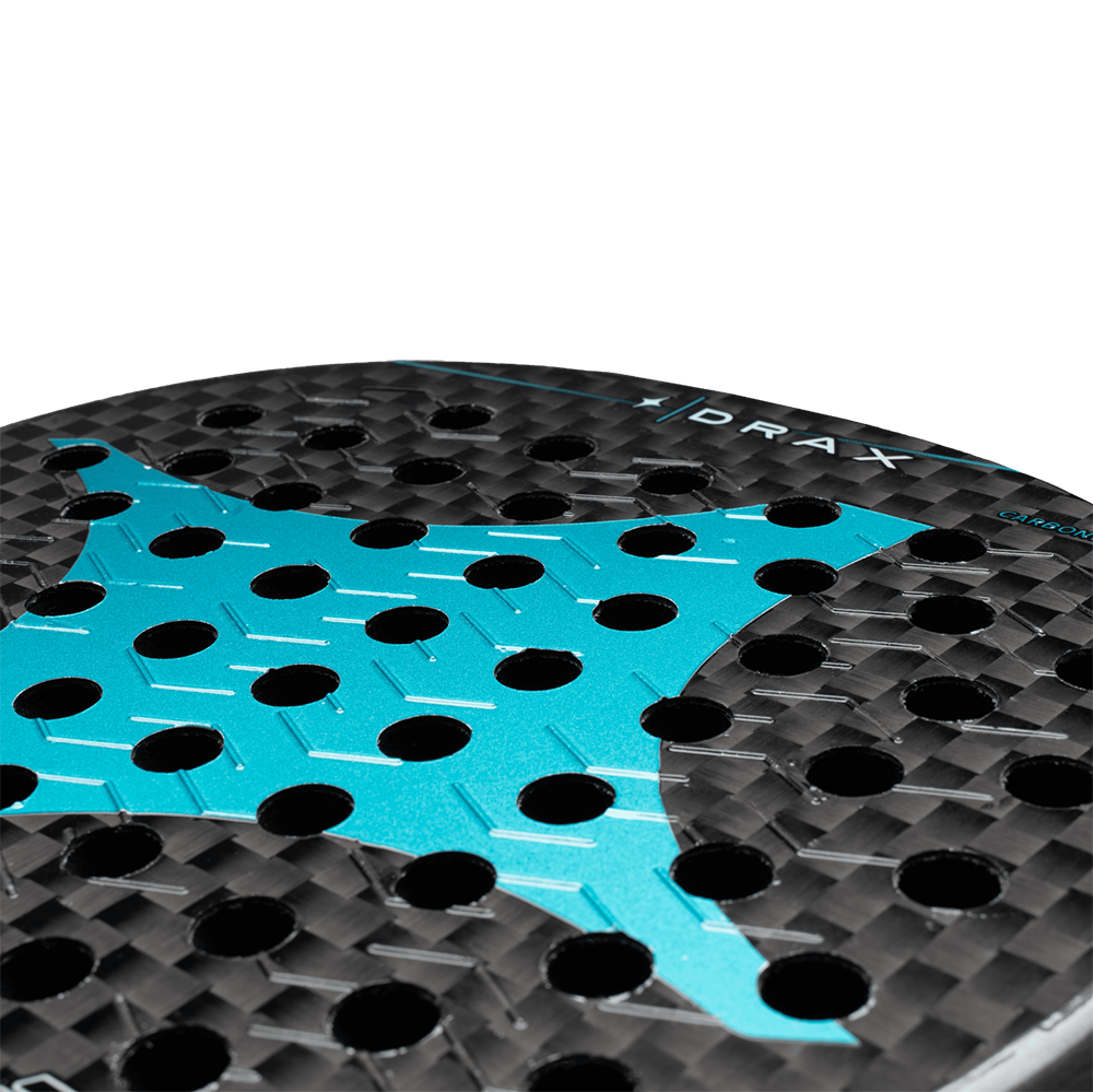 The Drax racket is a cutting-edge teardrop-shaped model designed for players seeking to elevate their game with a perfect blend of power, control, and comfort. Featuring the latest advancements in padel racket technology, the Drax is built with 12K carbon and Soft 30 rubber, providing an exceptional combination of flexibility, maneuverability, and ball rebound.