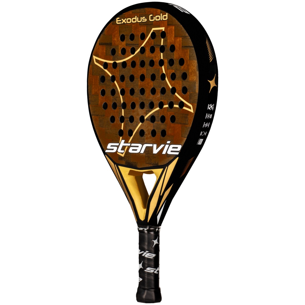 The Exodus Gold/Black racket combines style and functionality, offering a high-quality option for players looking for both elegance and performance on the court.