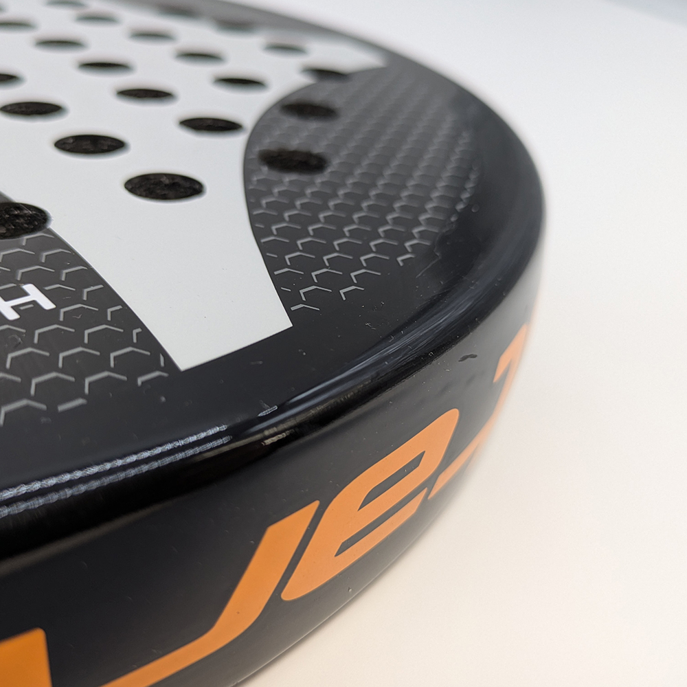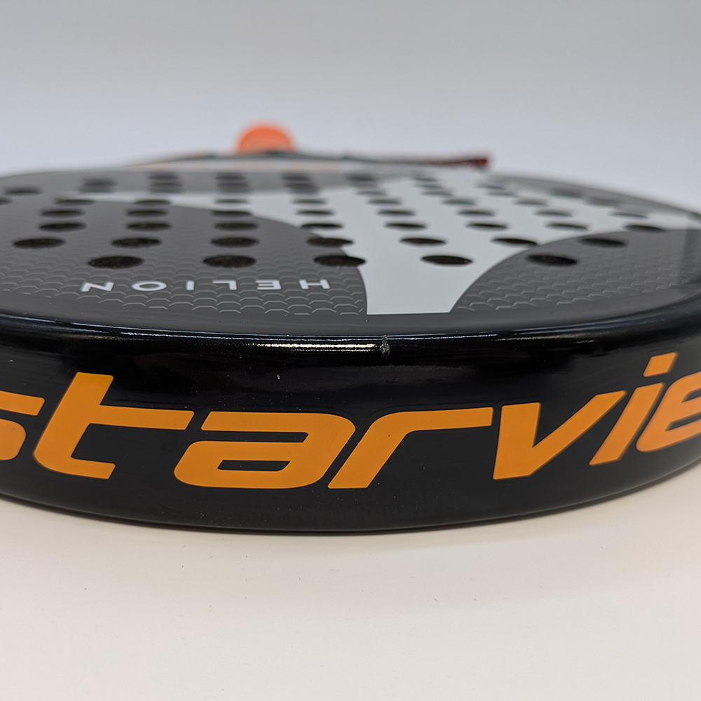 The Helion racket is ideal for those players who are just starting out in padel and are looking for a softer, more flexible feel, with good ball speed when striking the ball and great comfort thanks to its fibreglass composition in the head of the racket and its Ultra Speed Soft rubber.Ultra Speed Soft technology, allowing for greater ball control. Mixed frame, construction of the frame of the racket from both carbon fibre and fibreglass that provides greater elasticity to the racket and greater ball speed when striking.Reinforcement Torsion System, applied to the core of the racket to help reduce the vibrations transmitted to the handle of the racket. Includes the new Extreme Spot tubular technology, which widens the sweet spot on the racket surface.Tier 1The padel is in excellent condition. There is very little sign of wear.