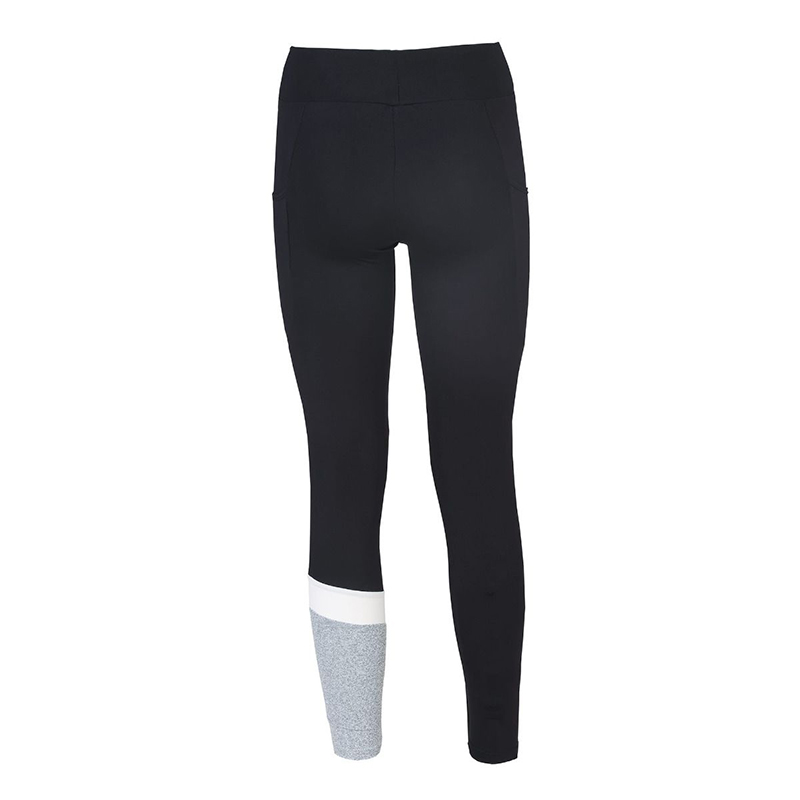 The Luxe mesh has a black design with gray and white touches at the bottom of the leg. It offers great comfort and ability to move while maintaining body heat.