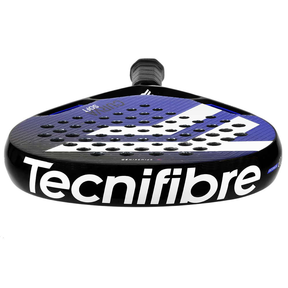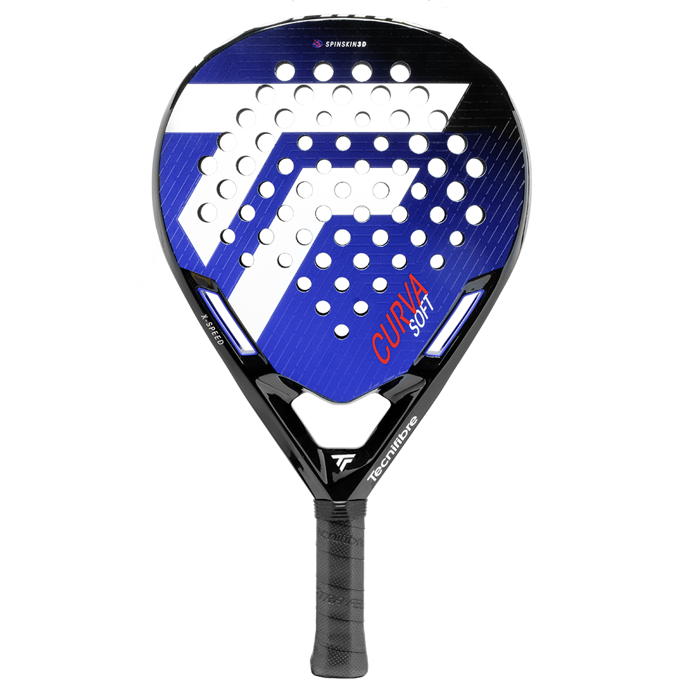Tecnifibre introduces the Curva, the first padel racket range with scientifically quantified performance, enhancing play for 91% of tested players.Elite players master a negative angle for low rebounds, while intermediate players struggle with upward arcs.X-Speed Technology, featuring air-optimized perforations, improves swing speed and shot trajectory, confirmed through Trackman radar testing.Built for durability, the X-Top Technology reinforces the racket with aramid fibres for superior shock resistance, while a PTFE coating reduces friction for increased longevity.Spin Skin Technology (excluding the Club model) enhances grip for better spin and control, and Progressive Hole Diameter improves accuracy and forgiveness on off-centre hits. Curva Soft is built with a soft foam core and carbon-fibreglass blend that offers exceptional comfort and feel. Ideal for new or recreational players, its neutral balance and 360g weight provide effortless playability.Finished with a premium gloss and a padded hand strap, the Curva range blends cutting-edge technology, durability, and style to elevate your padel game.