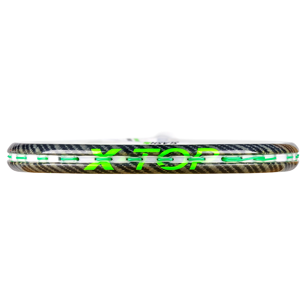 Stabyl technology: A new stiff mesh under the carbon above the handle reinforces the shaft, providing more stability upon ball impact.