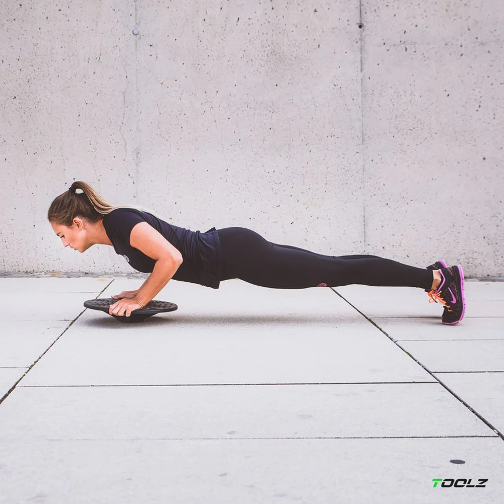 The round Balance Board from TOOLZ is the ideal training tool to strengthen the muscles and to train the reactivity and perception of board sportsmen.