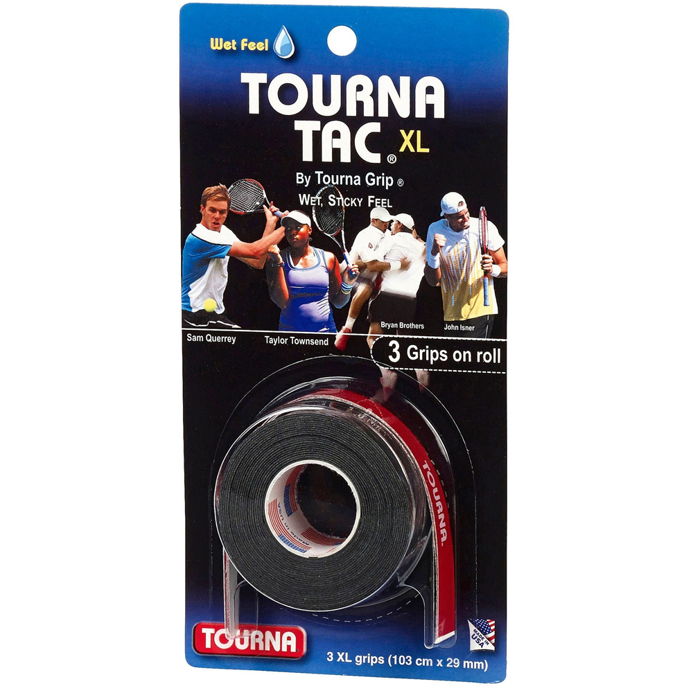 Tourna Grip Tac XL Overgrip (3 Roll) Tacky, sticky, wet feel. Non slip and absorbs moisture.