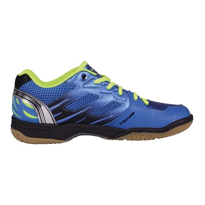 Performance Breakdown – Stability & Support: Using LSS and BRACETEK technologies, the shoe provides rigid lateral support. This prevents the foot from sliding within the shoe or rolling over during sharp, high-speed lateral cuts. – Dynamic Cushioning: The NEO DUPLEX midsole combines ENERGYMAX 3.0 with Light Resilient EVA. This double wedge design absorbs the shock of heavy landings and converts it into energy for your next movement. – Durability & Build: To handle the friction of indoor courts, the upper features a V-Durable rubber layer. This protects the shoe from wear during toe drag movements, while the Double Mesh ensures the foot stays ventilated. – Traction: The sole utilises a specific RADIATION pattern, ensuring the grip is consistent whether you are moving forward, backward, or side-to-side.