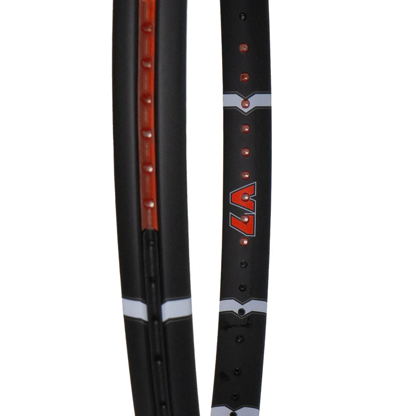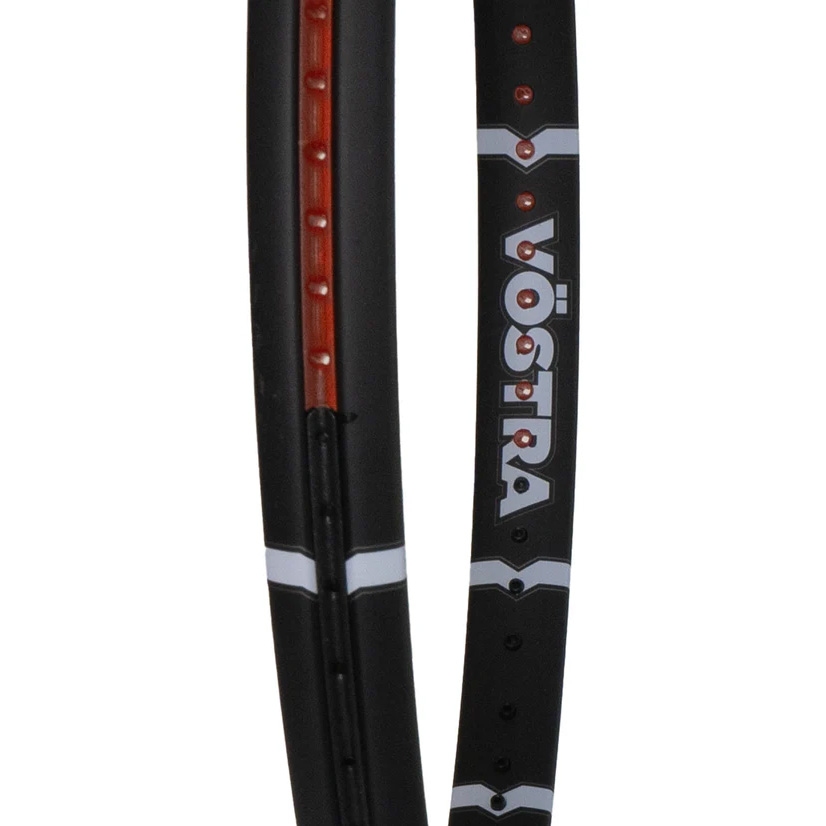 The VÖSTRA V7 is a powerful and spin-friendly racquet, thanks to its light weight, open 16×19 string pattern, slightly larger 100in² head size, and firm flex.