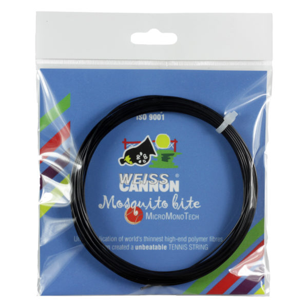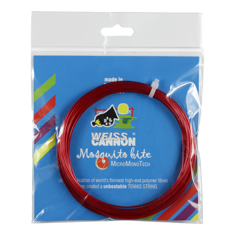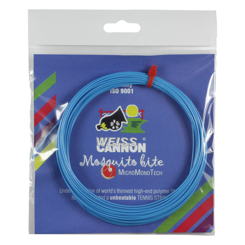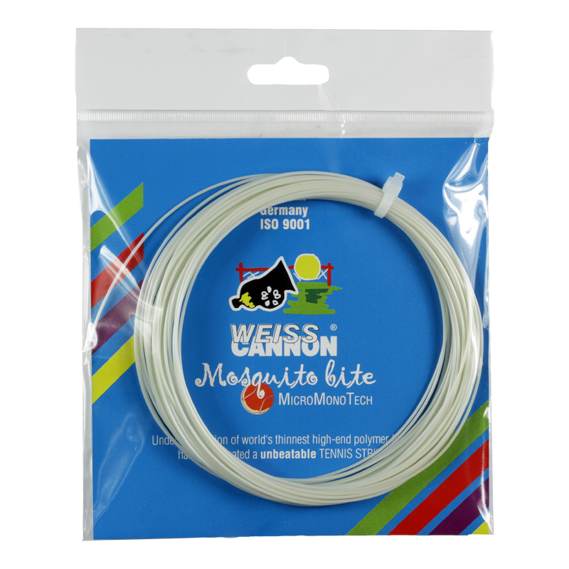 Only offered in 18g/1.16mm Mosquito Bite is an ultra thin monofilament with a nasty bite. This one can cause all sorts of problems for your opponent. Offering power, spin, and control, your opponent will be begging for repellent! This performance oriented high-end polymer string provides a lively feel while maintaining its tension.