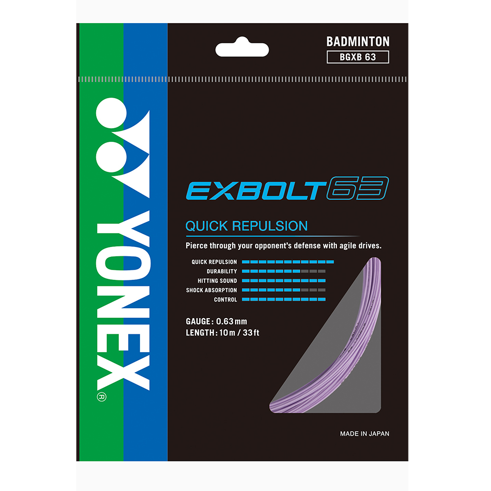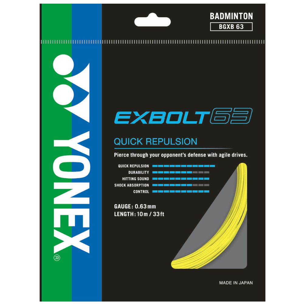 Yonex Exbolt 63 0.63mm Badminton string is a forged fiber string which allows up to 24% more durability. The characteristics of Exbolt are enhanced repulsion, durability and hitting sound.