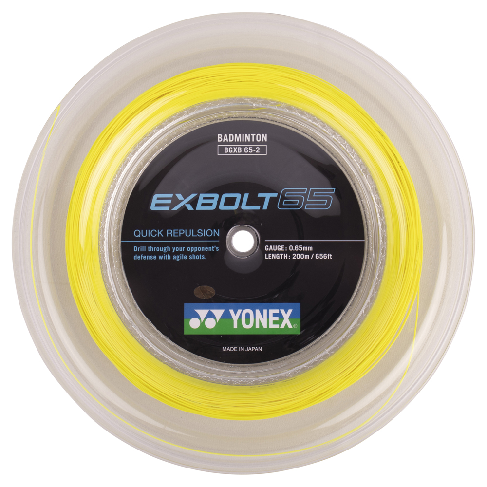 Yonex Exbolt 65 0.65mm Badminton is a forged fiber string which allows up to 24% more durability. The characteristics of Exbolt are enhanced repulsion, durability and hitting sound.