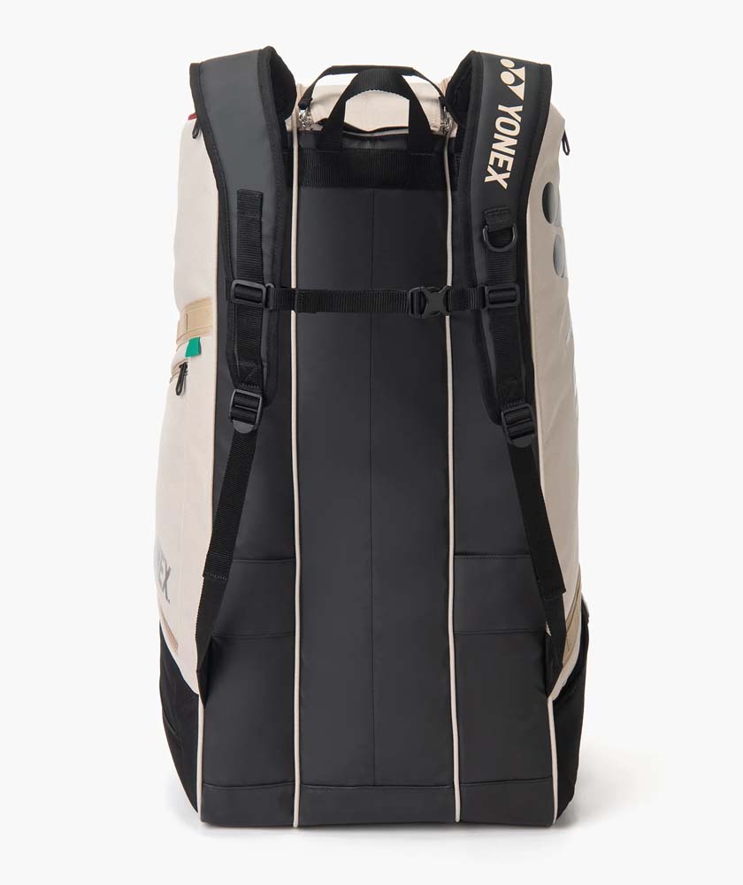 Key SpecificationsCapacity: Holds up to 9 rackets (Tennis, Badminton, or Squash). The bag is divided into three primary main compartments to maximise organisation.Colours: Launched in Beige and Black.Climate Protection: One compartment is lined with thermal-guard material to shield your rackets and strings from extreme heat and cold.U-Shape Access: The central compartment features a U-shaped zipper for easier access to bulkier items like apparel and towels.