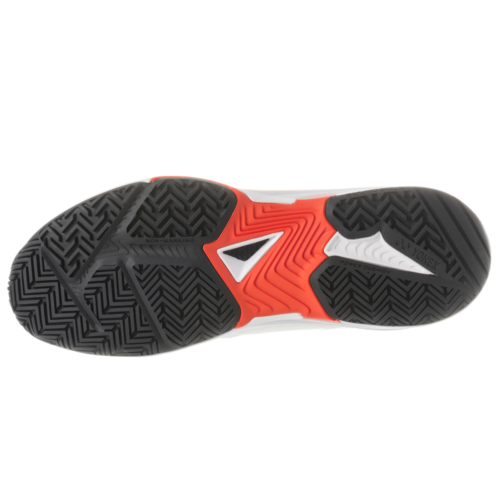 Yonex Sonicage Tennis Shoes, stable and lightweight with superior cushioning.Upper: Double Russel Mesh, Durable Skin, P.U.Leather, Durable Skin LightMidsole: E.V.A., POWER CUSHION+, T.P.U., Power Graphite SheetOutsole: Endurance Rubber.Round Sole – The YONEX Round Sole ™ is designed to provide all-around support for quick and smooth footwork. The Round Sole ensures smooth movements and the transfer of maximum energy.Toe Assist ShapeDurable Skin – The visually improved upper design technology increases durability whilst maintaining comfort for smoother footwork.Power Cushion+ – By adding a special elastic resin to POWER CUSHION, while maintaining the conventional lightweight properties, high shock absorption is realized. Grooves designed in a lattice pattern, with optimum spacing and depth, achieve further resilience. Compared with conventional POWER CUSHION, the new POWER CUSHION + boasts 25% more shock absorption and 12% more repulsion.