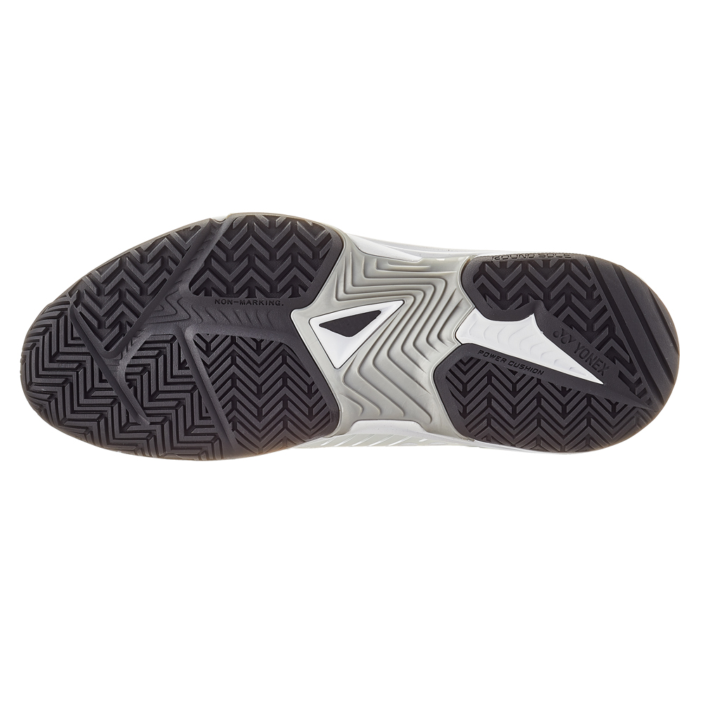 Yonex Sonicage Tennis Shoes, stable and lightweight with superior cushioning.Upper: Double Russel Mesh, Durable Skin, P.U.Leather, Durable Skin LightMidsole: E.V.A., POWER CUSHION+, T.P.U., Power Graphite SheetOutsole: Endurance Rubber.Round Sole – The YONEX Round Sole ™ is designed to provide all-around support for quick and smooth footwork. The Round Sole ensures smooth movements and the transfer of maximum energy.Toe Assist ShapeDurable Skin – The visually improved upper design technology increases durability whilst maintaining comfort for smoother footwork.Power Cushion+ – By adding a special elastic resin to POWER CUSHION, while maintaining the conventional lightweight properties, high shock absorption is realized. Grooves designed in a lattice pattern, with optimum spacing and depth, achieve further resilience. Compared with conventional POWER CUSHION, the new POWER CUSHION + boasts 25% more shock absorption and 12% more repulsion.