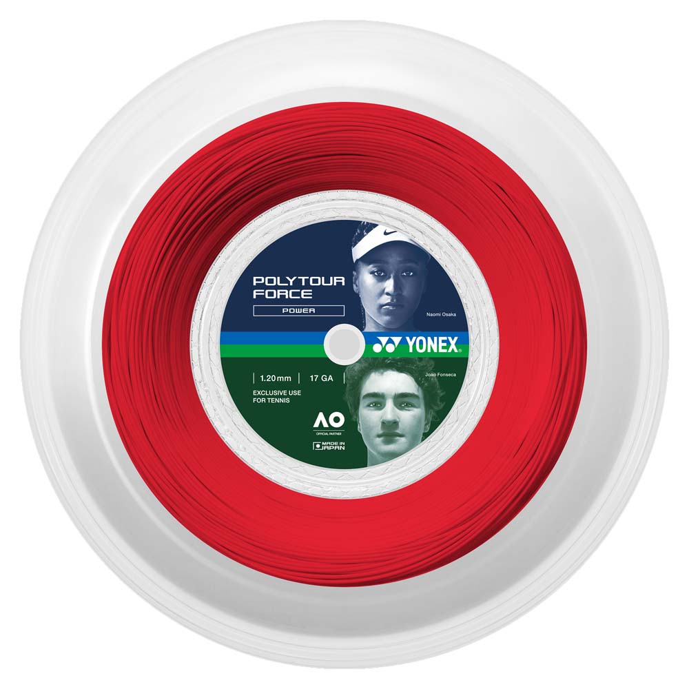 The Yonex PolyTour Force is a premium polyester monofilament string designed for heavy hitters who want a blend of power and tension maintenance.