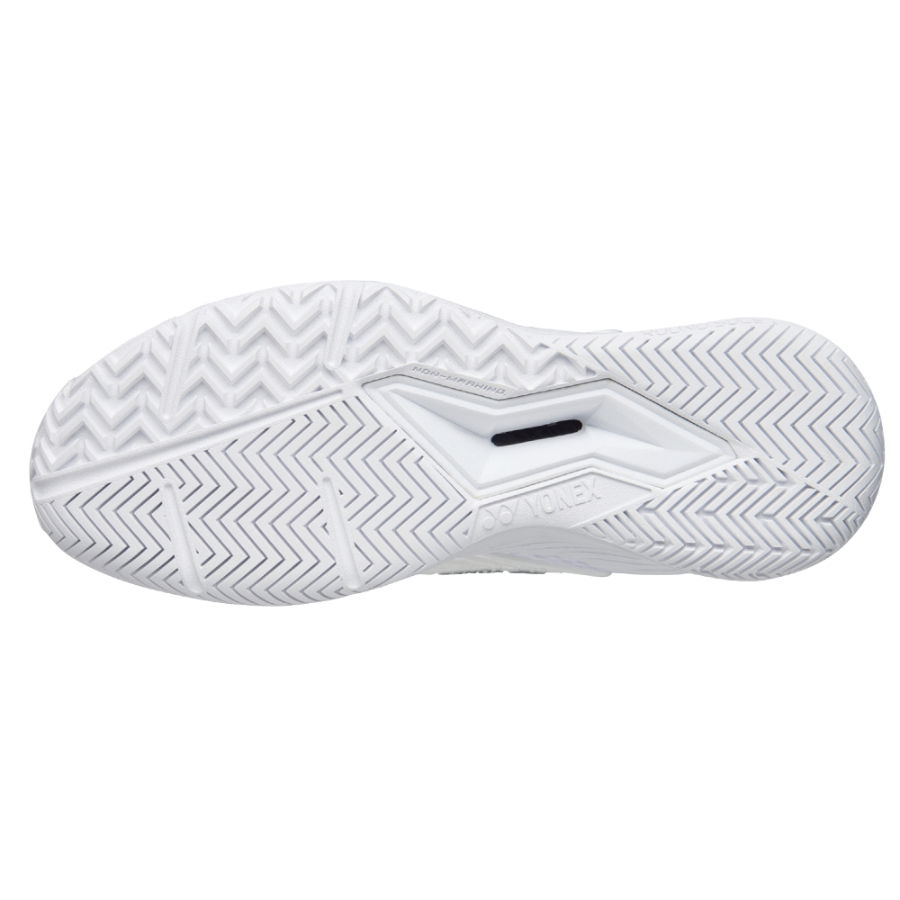 The Yonex Power Cushion absorbs shock then reverses the impact energy for smooth transfer into the next movement. With a one piece outsole from the toe to the heel, this shoe offers maximum stability